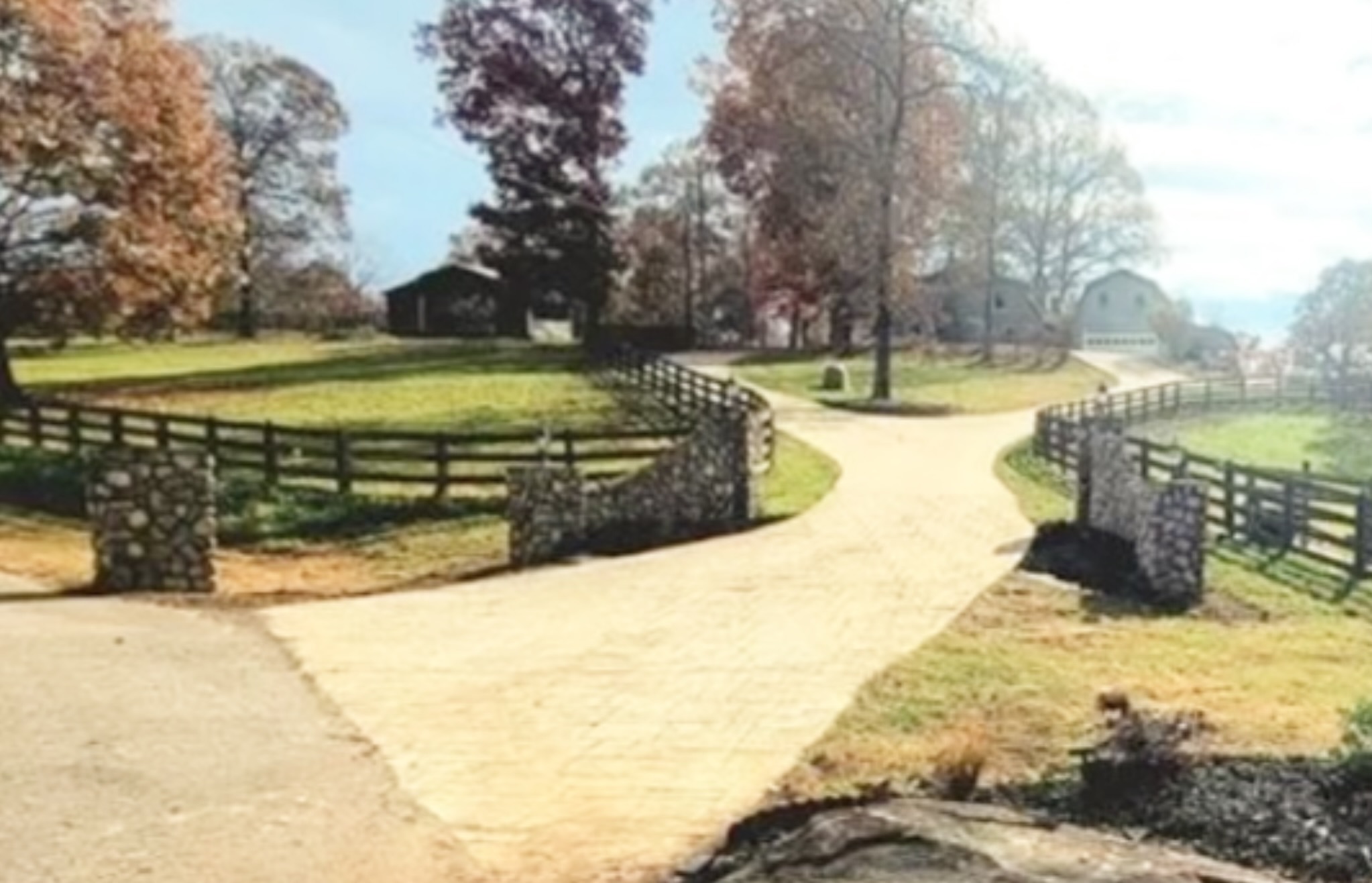 Grand entrance to this fabulous Equestrian Property with Architectural Masonry River Rock Stone walls